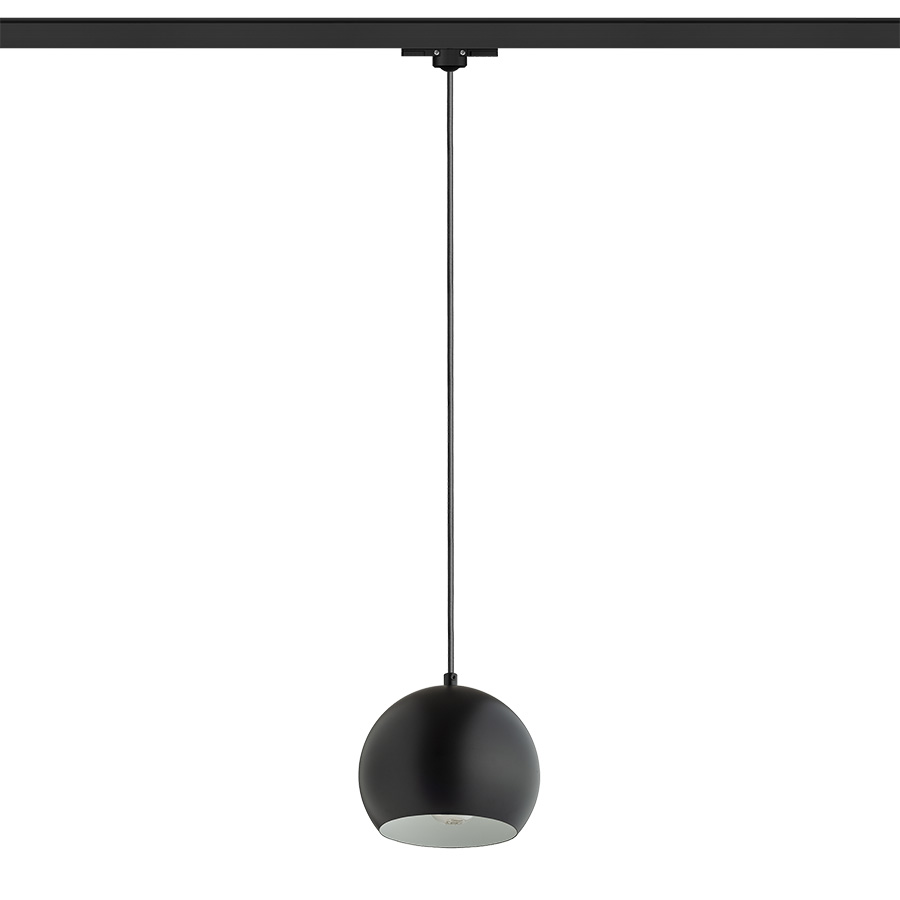 Kerek fém függõlámpa E27-es izzóhoz. Az tápkábel háromáramkörû sínhez csatlakozó adapterrel van ellátva.