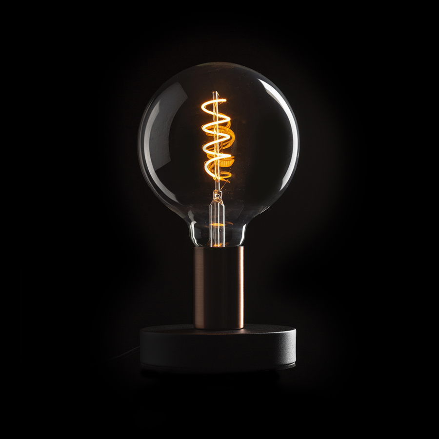 Asztali lámpa E27-es foglalatú dekorizzóval való használatra.