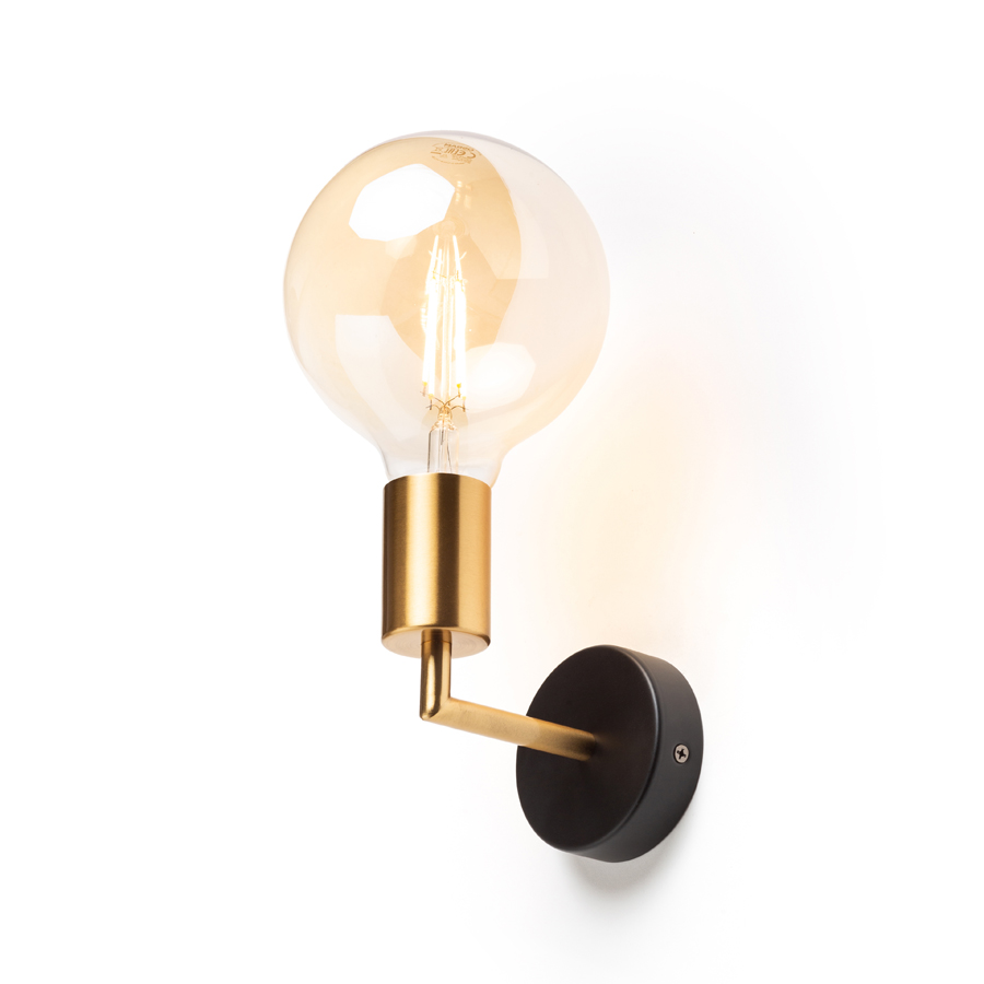 Fali lámpa sárgaréz foglalattal és karral fekete festésû alapon. E27-es foglalatú dekoratív izzóhoz alkalmas.