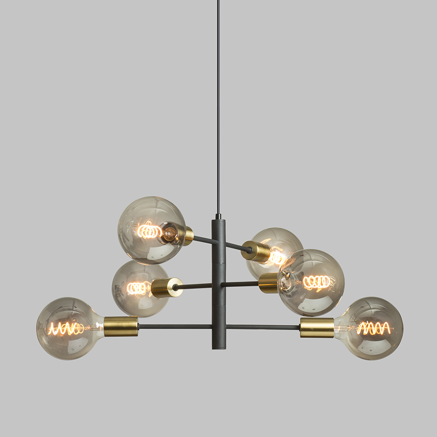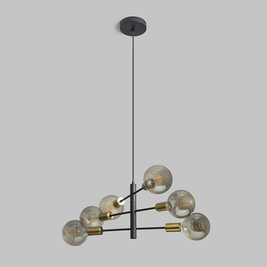 ARTEMIA 6 függõlámpa fekete szálcsiszolt sárgaréz 230V LED E27 6x15W