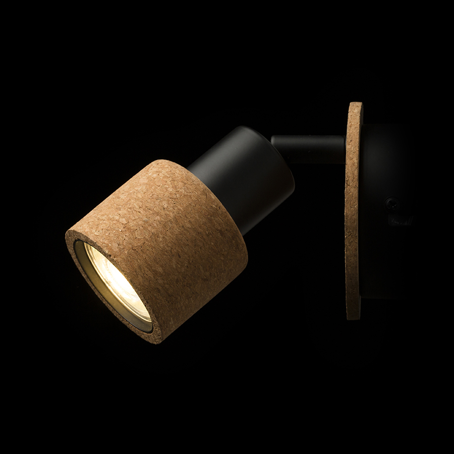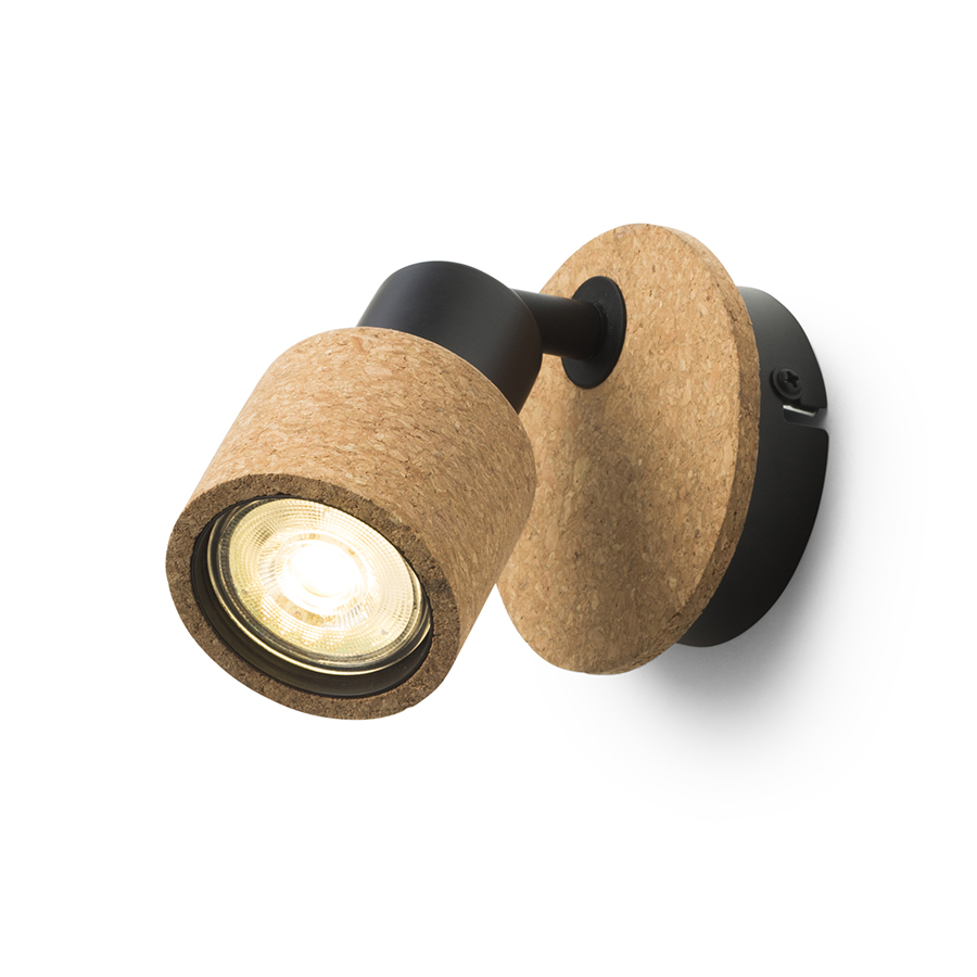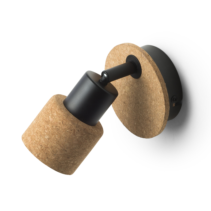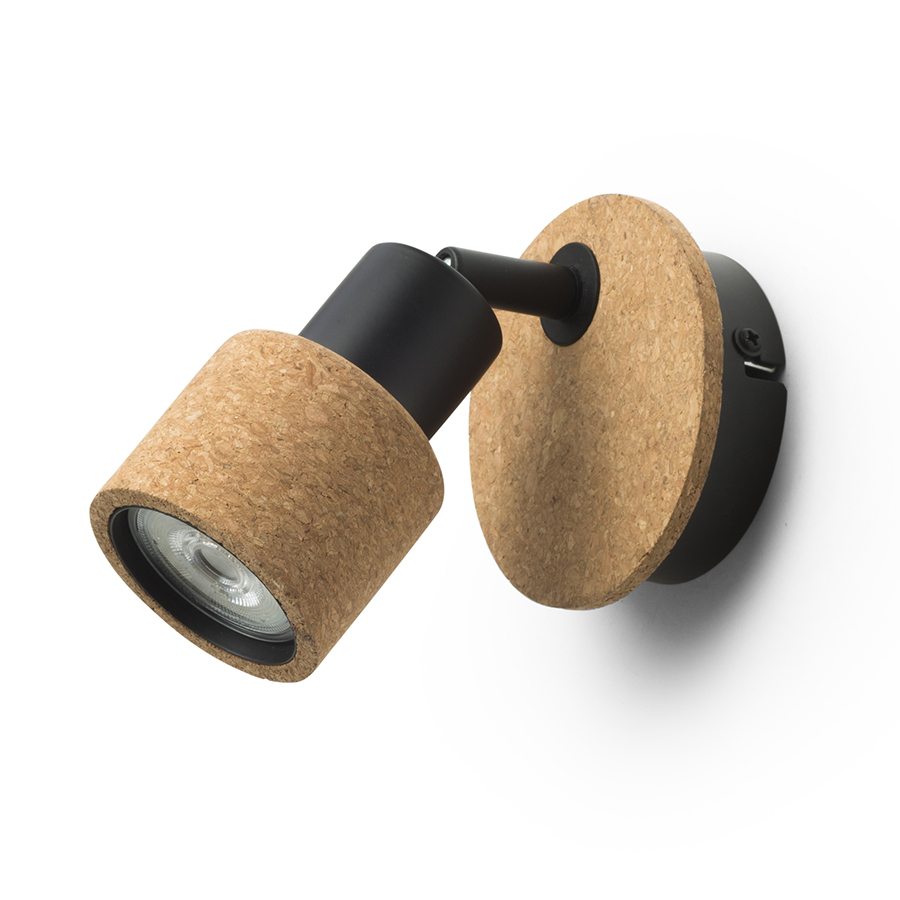 Természetes parafa és festett fém kombinációjából készült fali spotlámpa LED lámpákhoz GU10-es foglalattal.