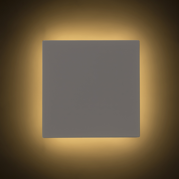 Falra szerelt négyzet alakú LED lámpa. Közvetett megvilágításhoz falról visszavert fénnyel belsõ és külsõ használatra.