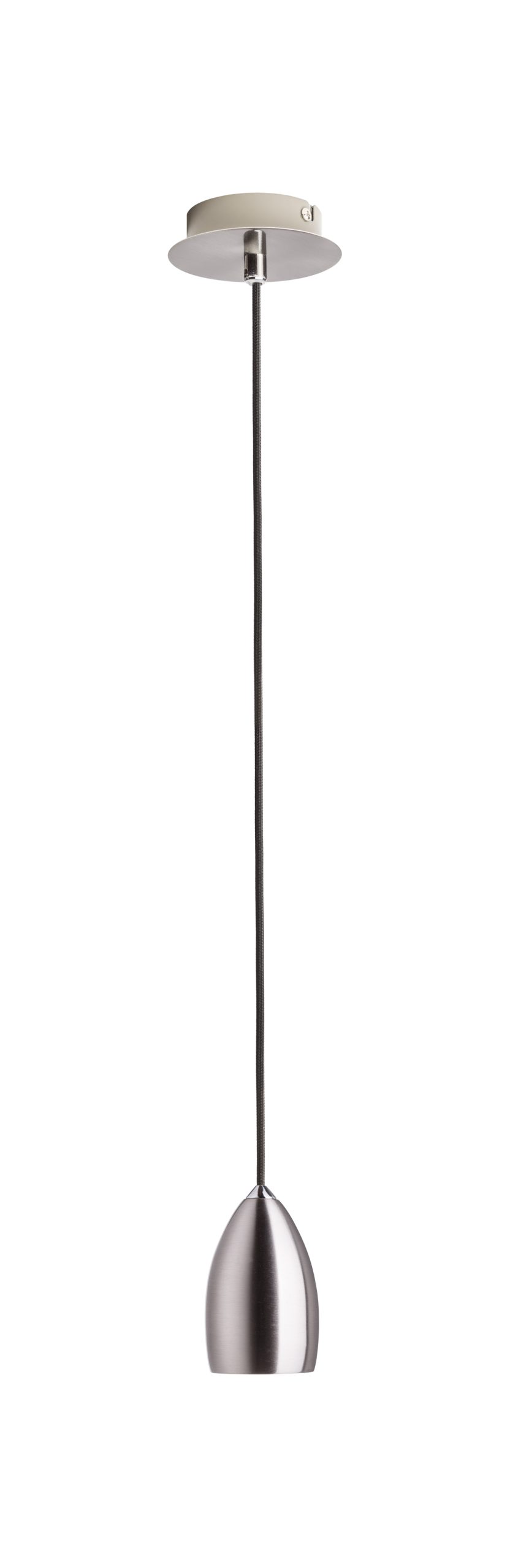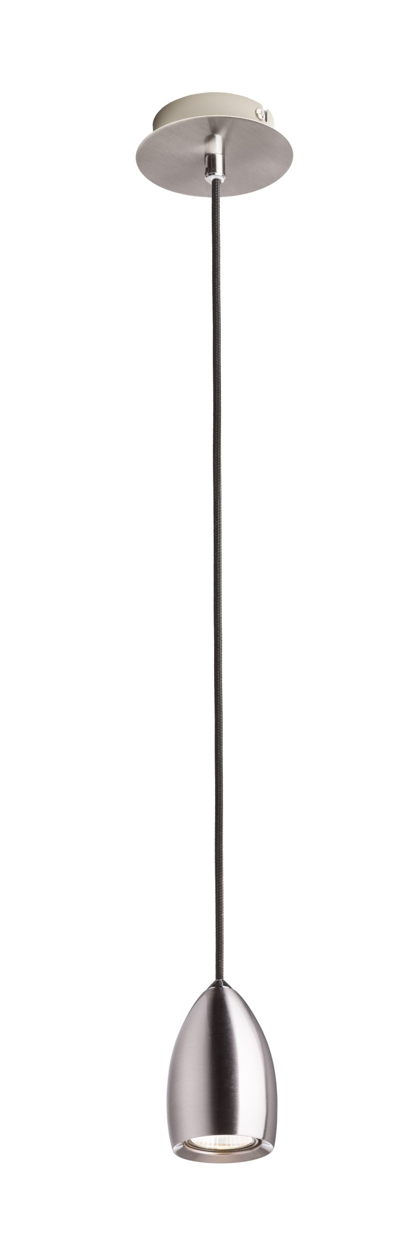 Függõlámpa króm vagy matt nikkel búrával és mennyezeti alappal. Fekete textil kábellel.