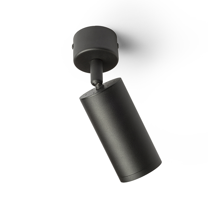 Egyszerû henger alakú reflektor GU10 foglalattal és kör alappal. A rugóval ellátott talpazat lehetõvé teszi a különbözõ hosszúságú izzók használatát.