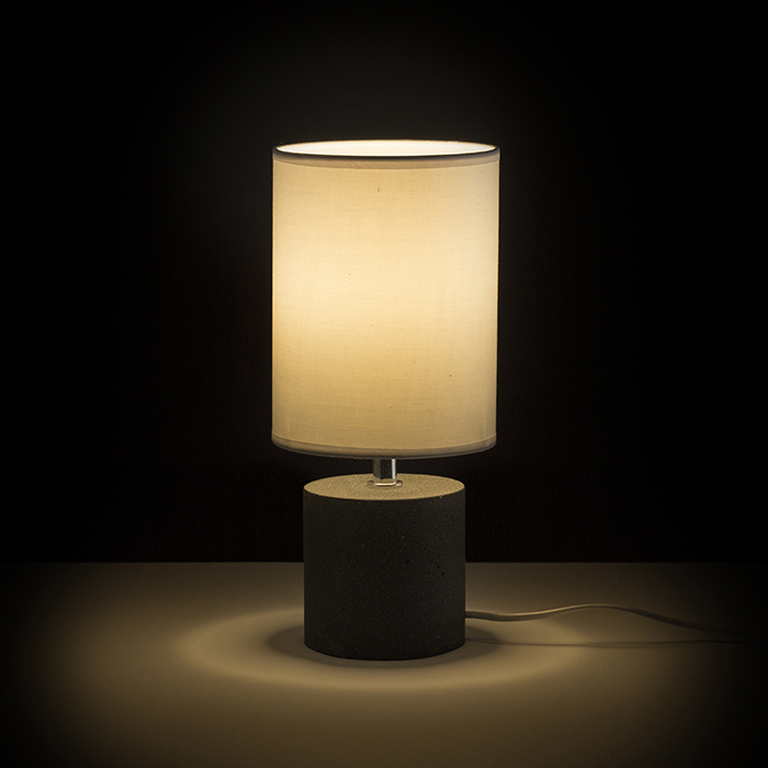 Letisztult formavilágú henger alakú asztali lámpa textil búrával amelyhez stílusban passzoló izzó ajánlott a harmonikus megjelenéshez. Minden lámpa dekorációja egyedi.
