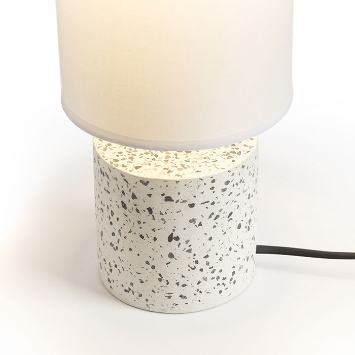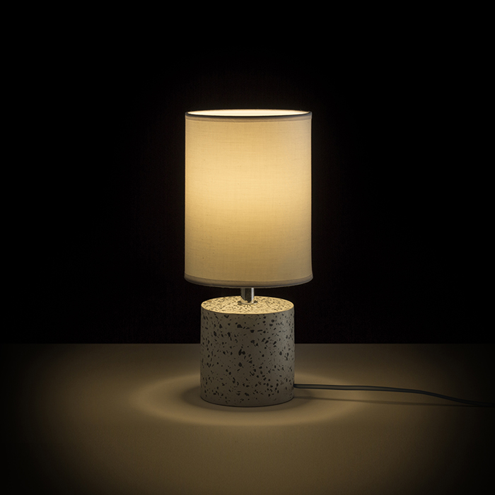 Letisztult formavilágú henger alakú asztali lámpa textil búrával amelyhez stílusban passzoló izzó ajánlott a harmonikus megjelenéshez. Minden lámpa dekorációja egyedi.