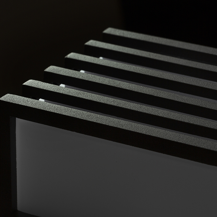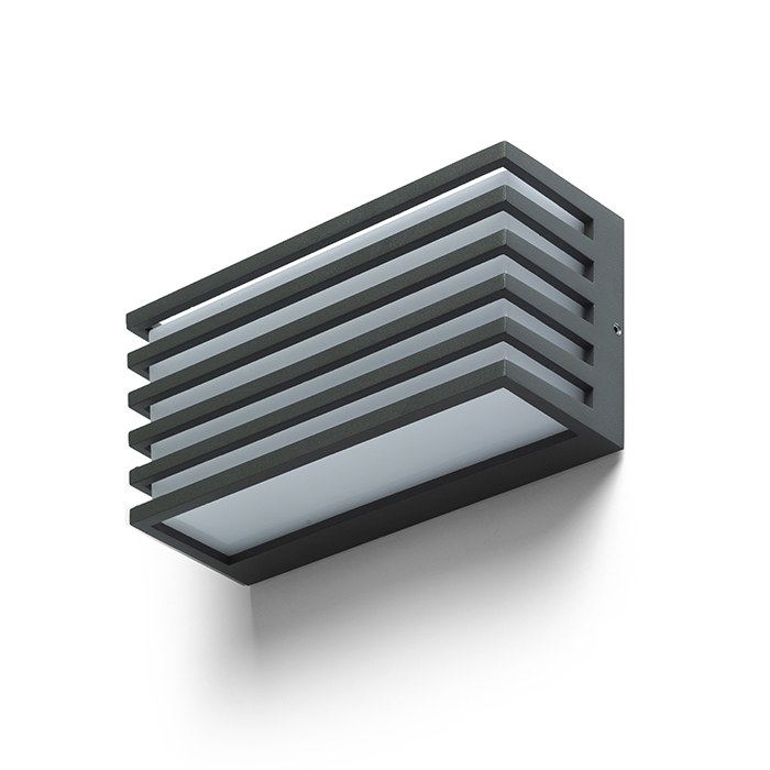 Kültéri fali LED lámpa. A lámpa háza lakkozott nyomás alatt öntött alumíniumból készült.