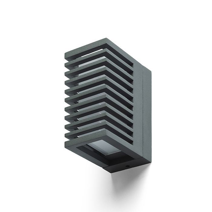 Kültéri fali LED lámpa. A lámpa háza lakkozott nyomás alatt öntött alumíniumból készült.