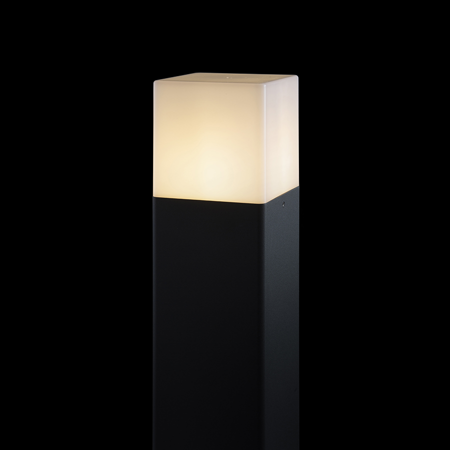 Kültéri állólámpa opál burkolattal E27 menetes LED izzóhoz.