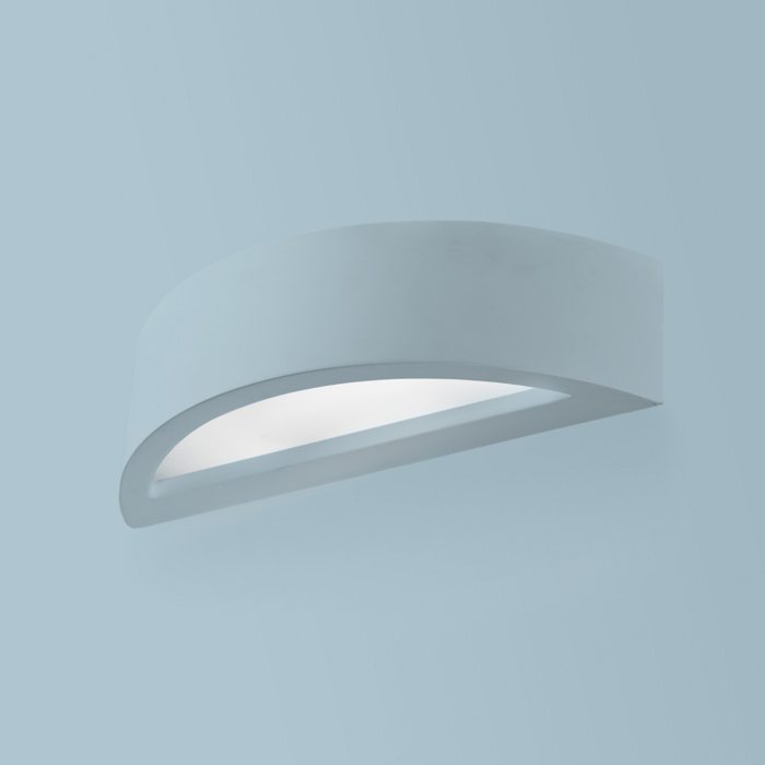 Fali gipsz lámpa FEL/LE világítással. Az alsó részt szaténüveg borítja. A lámpa 78 mm hosszú LED lineáris izzókhoz készült. A lámpa beltéri falfestékkel átfesthetõ.