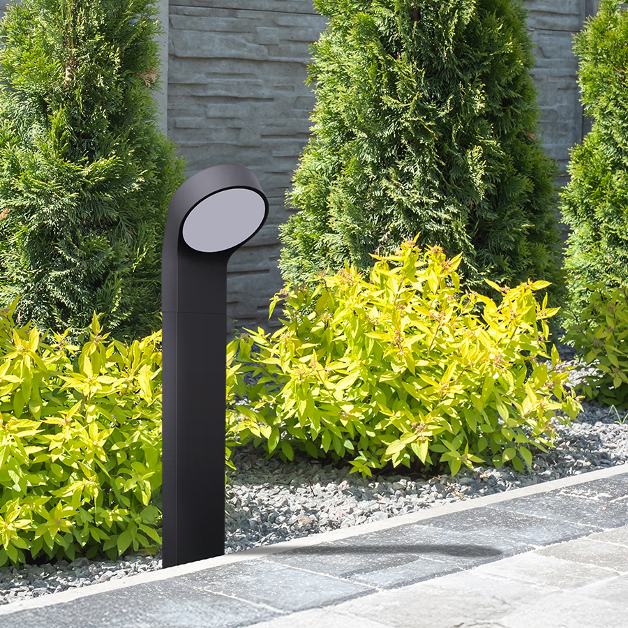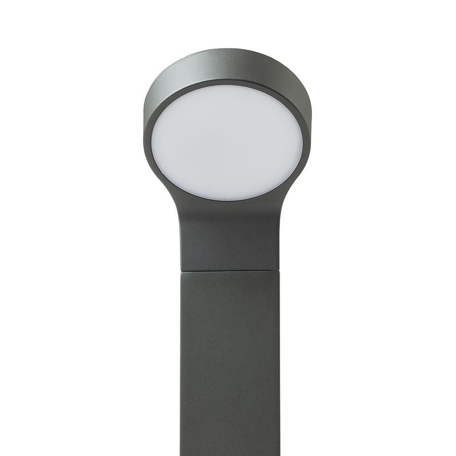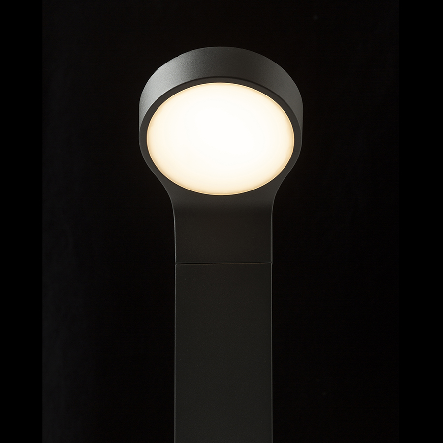 Az ELIA sorozat kültéri állólámpája masszív alumínium és opál diffúzor kombinációjával.