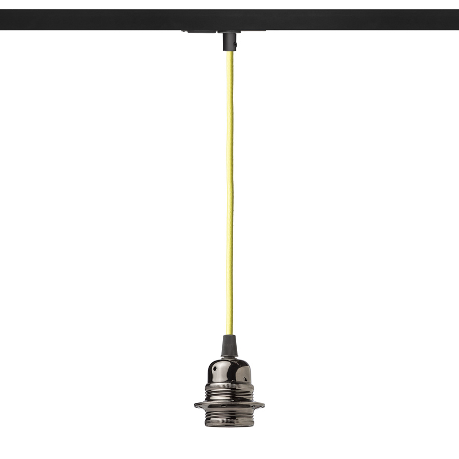 Színes textilkábel különbözõ színkombinációkban fém E27-es foglalattal dekoratív izzóhoz. A kábel végén egy adapter található amely lehetõvé teszi az egykörös sínrendszerbe való felfüggesztést.