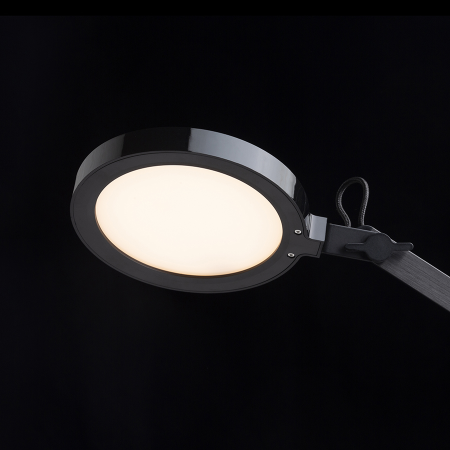LED asztali lámpa két karral. Az intenzitásszabályozó a fényszóró tetején található. Háromfokozatú fényerõszabályozás. A lámpa az EMA rögzítõ (R14290 R14291) külön megvásárlásával asztallapra vagy polcra is rögzíthetõ.