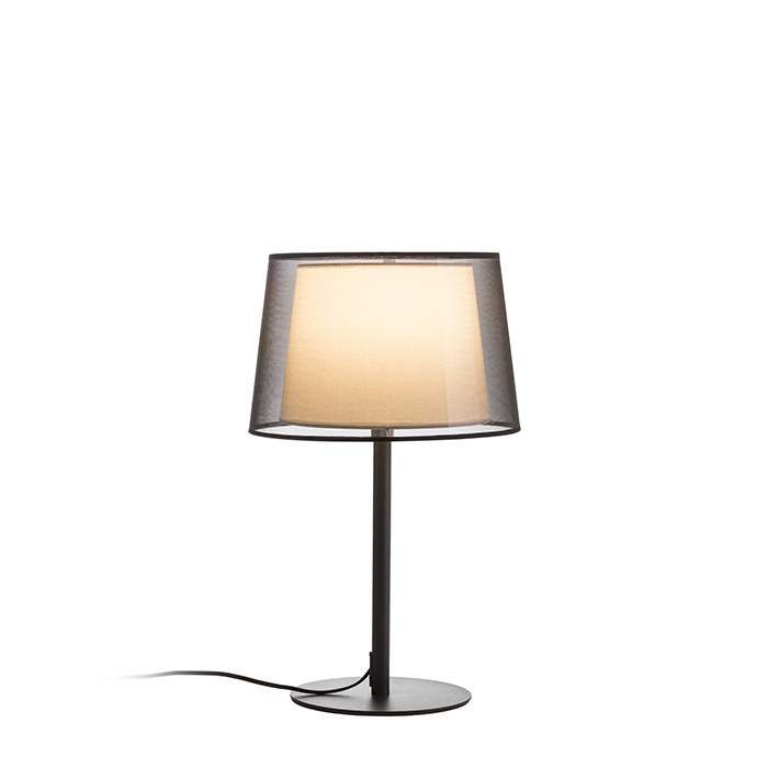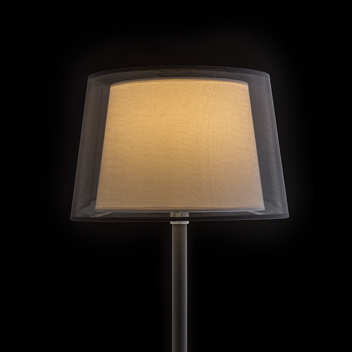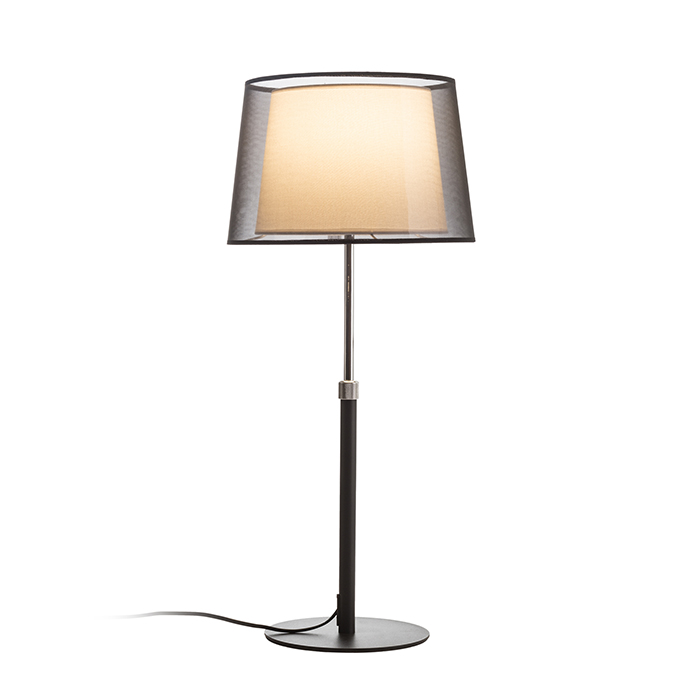 Asztali lámpa kettõs szövet búrával valamint teleszkópos lábbal a lámpa magasságának beállításához.