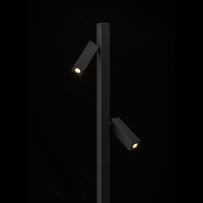 Szögletes dizájnú állólámpa két állítható LED reflektorral.