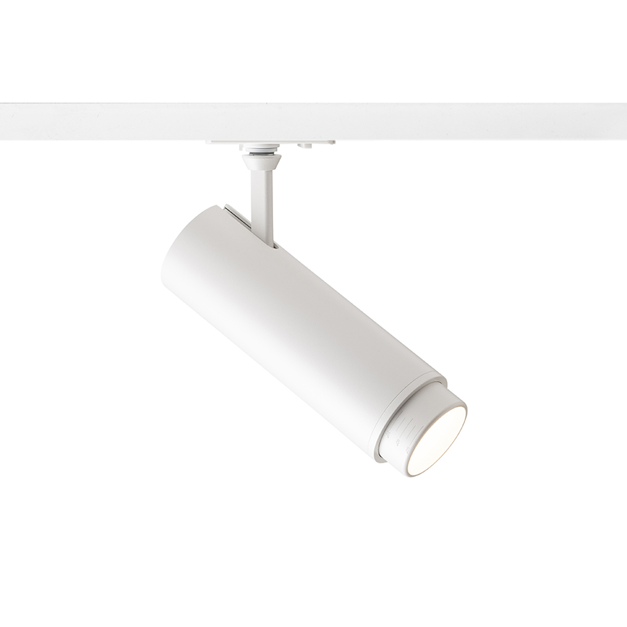 Fényerõszabályozható tubus alakú lámpa egyáramkörös sínhez a fénykúp 1060° között állítható zoom rendszer segítségével. A lámpán található kapcsolóval beállítható a fény színhõmérséklete: 3000K 4000K vagy 5000K. TRIAC-os fényerõszabályzás.