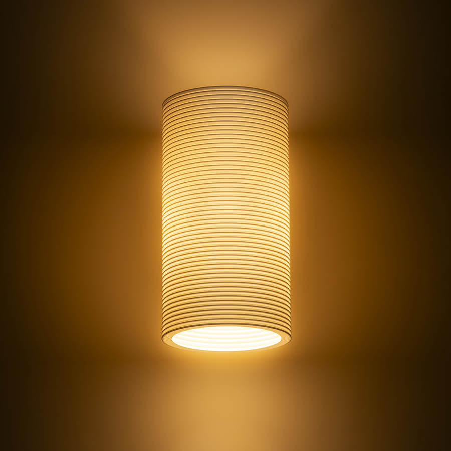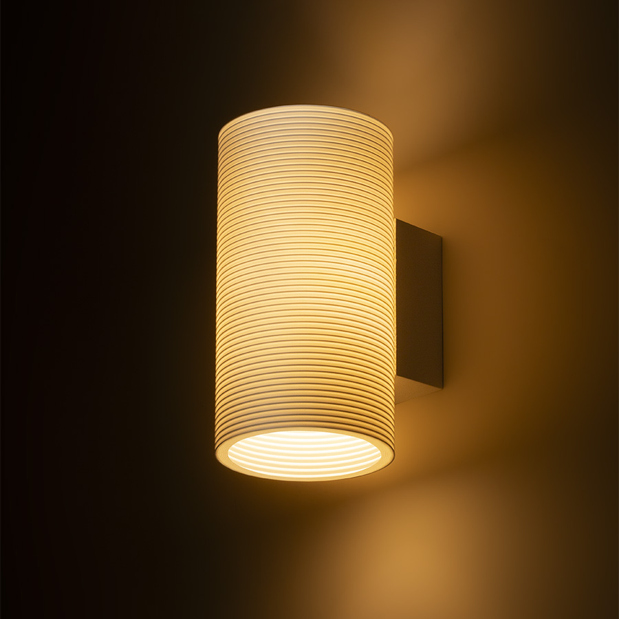 Fali lámpa amelyet 3D nyomtatással hoztak létre. Az ernyõ környezetbarát PLA anyagból készült amely teljesen lebomlik.