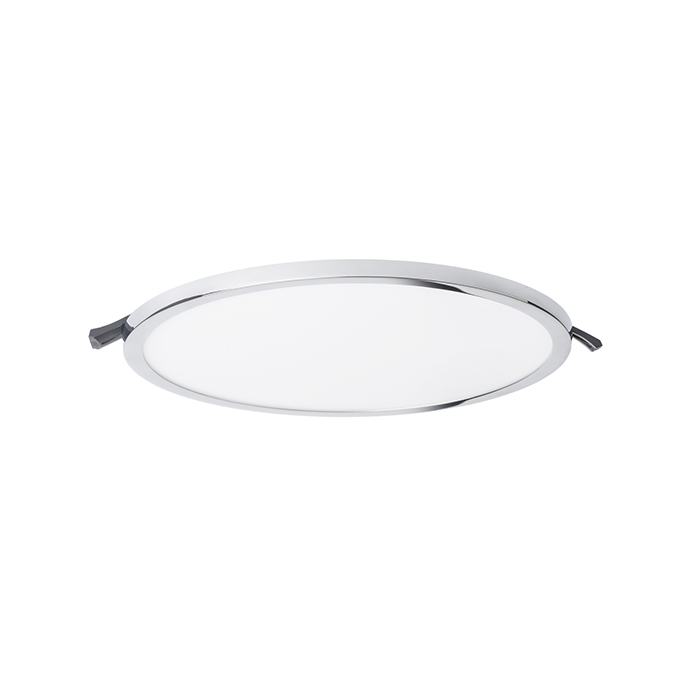 Nagyon vékony kör alakú süllyesztett lámpa nagy fényerejû LED-ekhez. A keretek króm fekete króm matt nikkel fehér lakk és fa utánzat kivitelben.