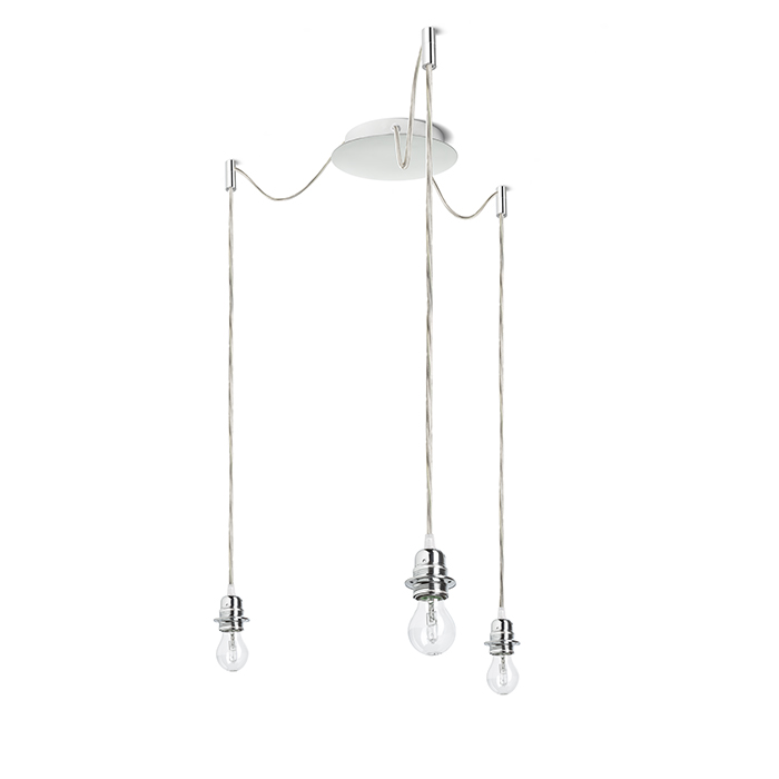 Függõlámpa központi mennyezeti alappal és különálló textil karokkal E27 fém foglalattal.A zsanérok króm mennyezeti tartókkal vannak felszerelve amelyeket az alaptól külön-külön választott távolságra lehet elhelyezni. A kábel teljes hossza 3 m. Alkalmas lámpabúrák: ARISTA DELI JAKARANDA DOUBLE 40/30 DOUBLE 55/30 ASPRO 40/30 ASPRO 55/30 RON 15/20 RON 40/25 RON 55/30 TEMPO 15/30 TEMPO 30/19.