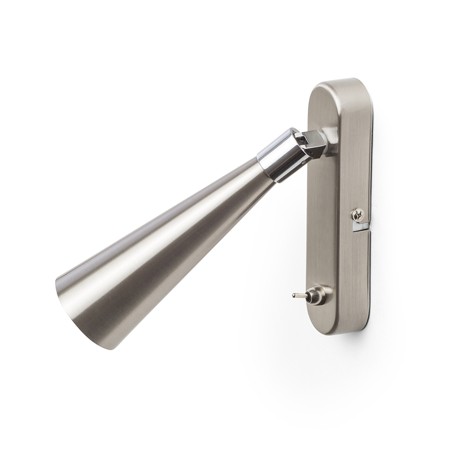 Fali lámpa kúp alakú reflektorral, GU10 foglalatú LED égőhöz, a kapcsoló a lámpa talapzatán található.
