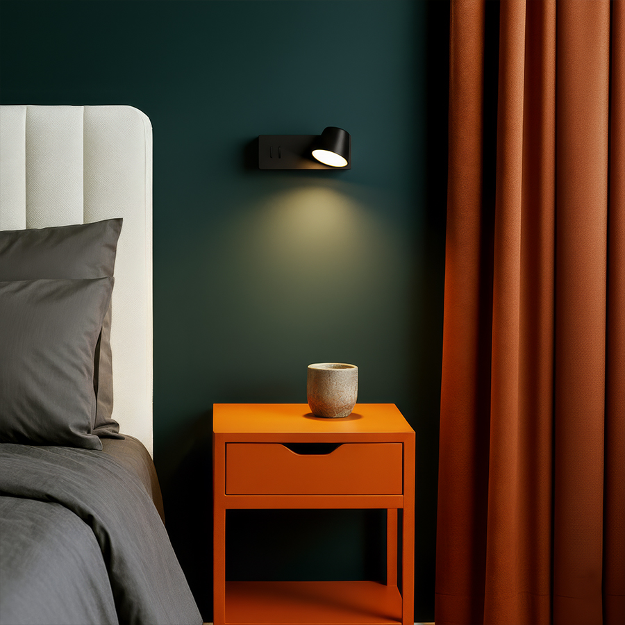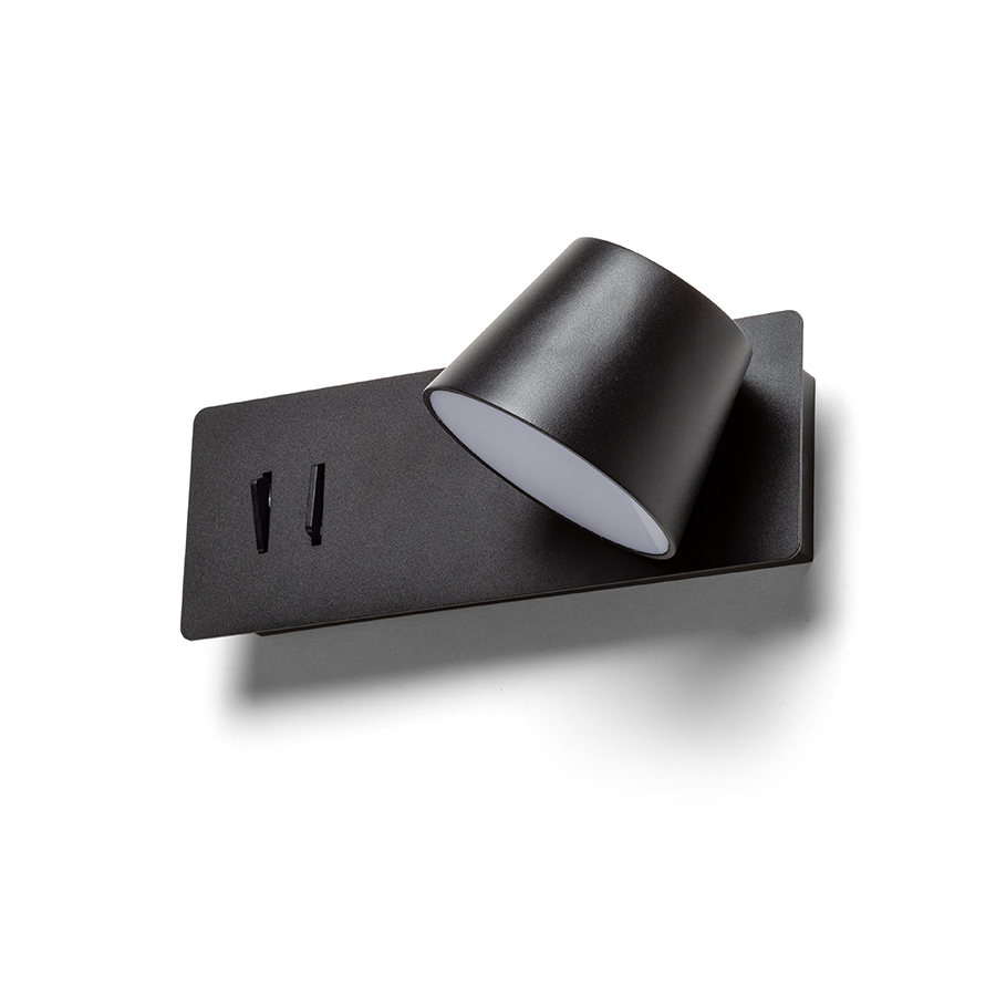Fali, LED lámpa elforgatható reflektorral és egyirányú indirekt megvilágítással. A fényvisszaverő és a közvetett világítás külön kapcsolókkal vezérelhető a lámpa alján.