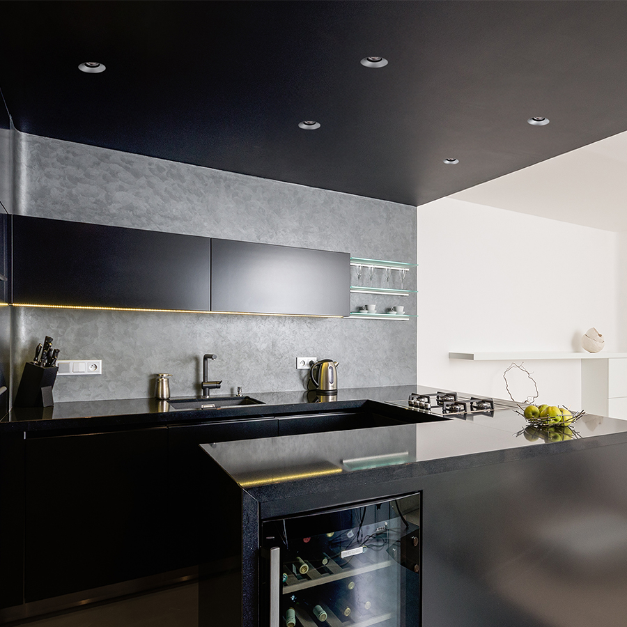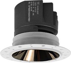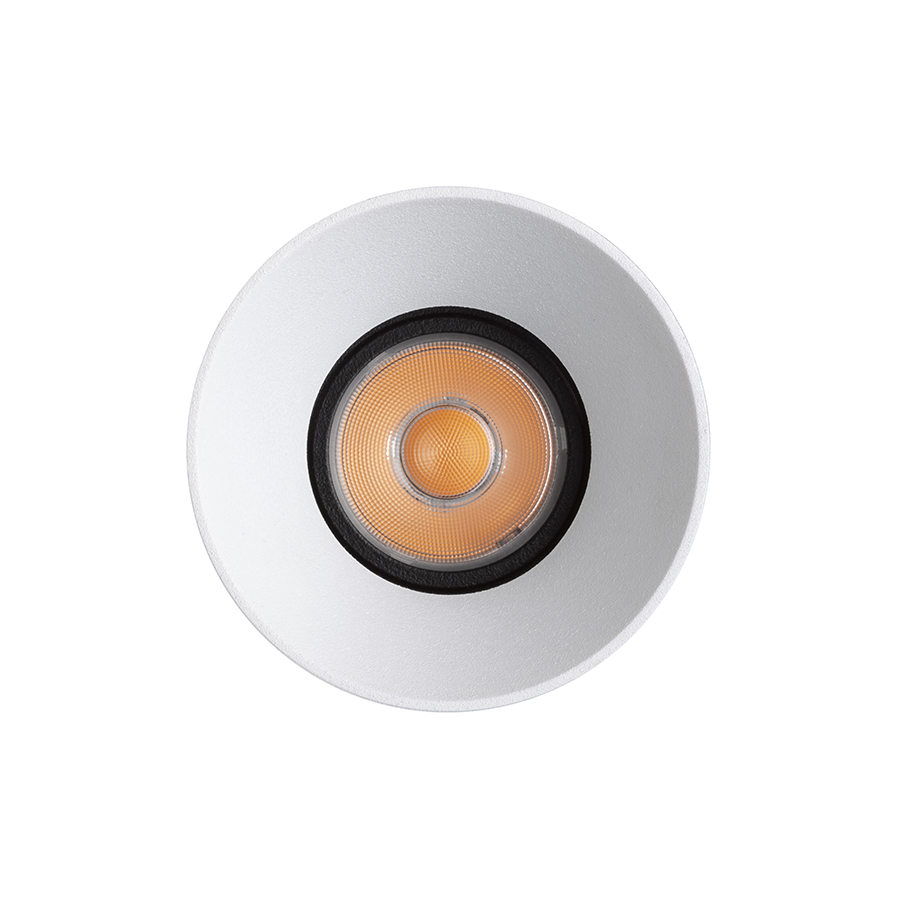 Süllyesztett, keret nélküli LED lámpa, belső fehér dekoratív reflektorral. A lámpatest megjelenése megváltoztatható az opcionálisan megvásárolható ANTARES dekoratív reflektorral.