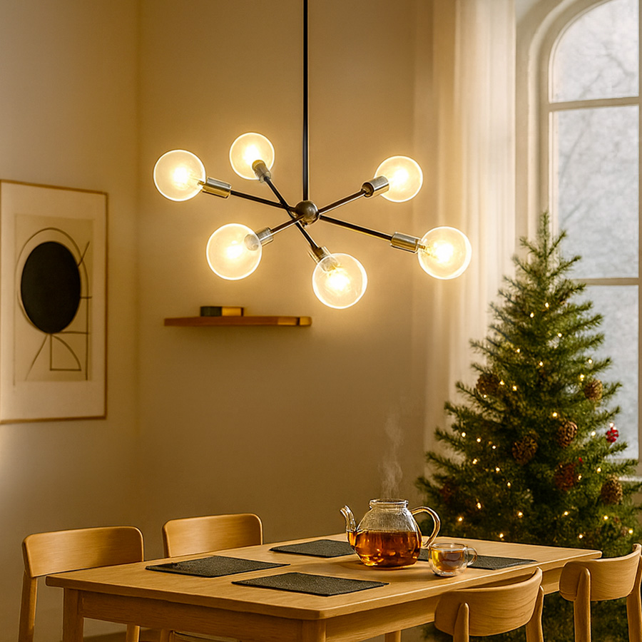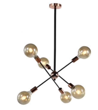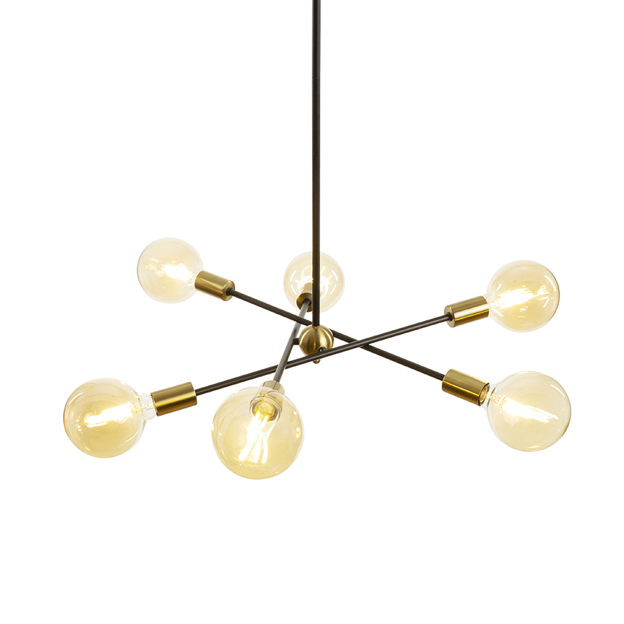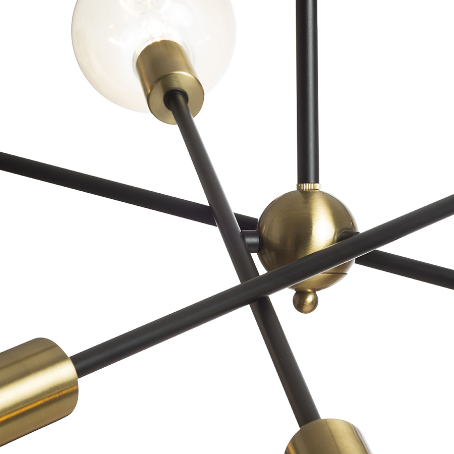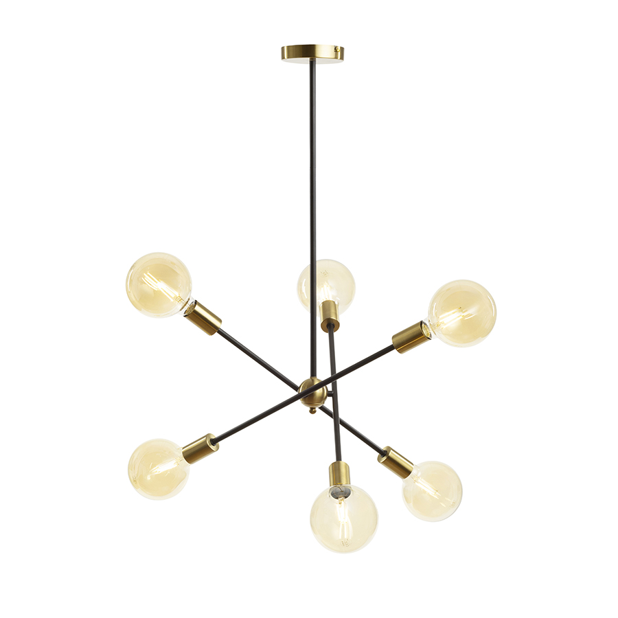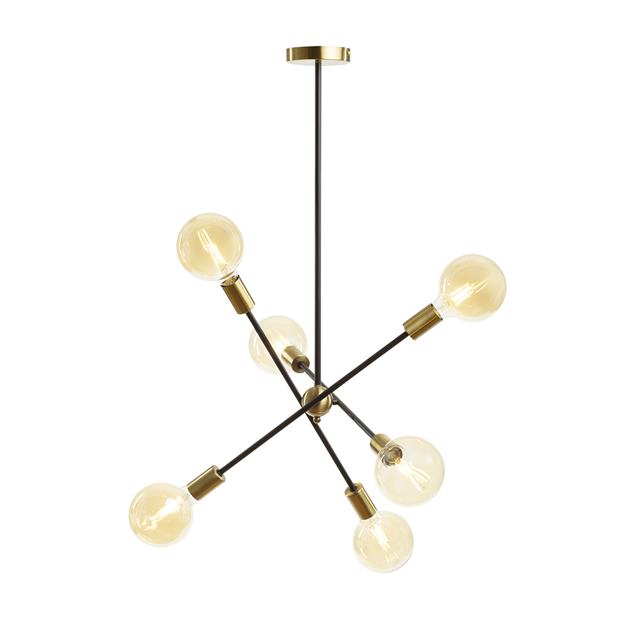 Rúdra függesztett függólámpa dekoratív sárgaréz foglalatú zárósapkákkal. A lámpa a karok állításával alakítható. Alkalmas E27-es foglalattal rendelkező LED fali lámpákhoz.