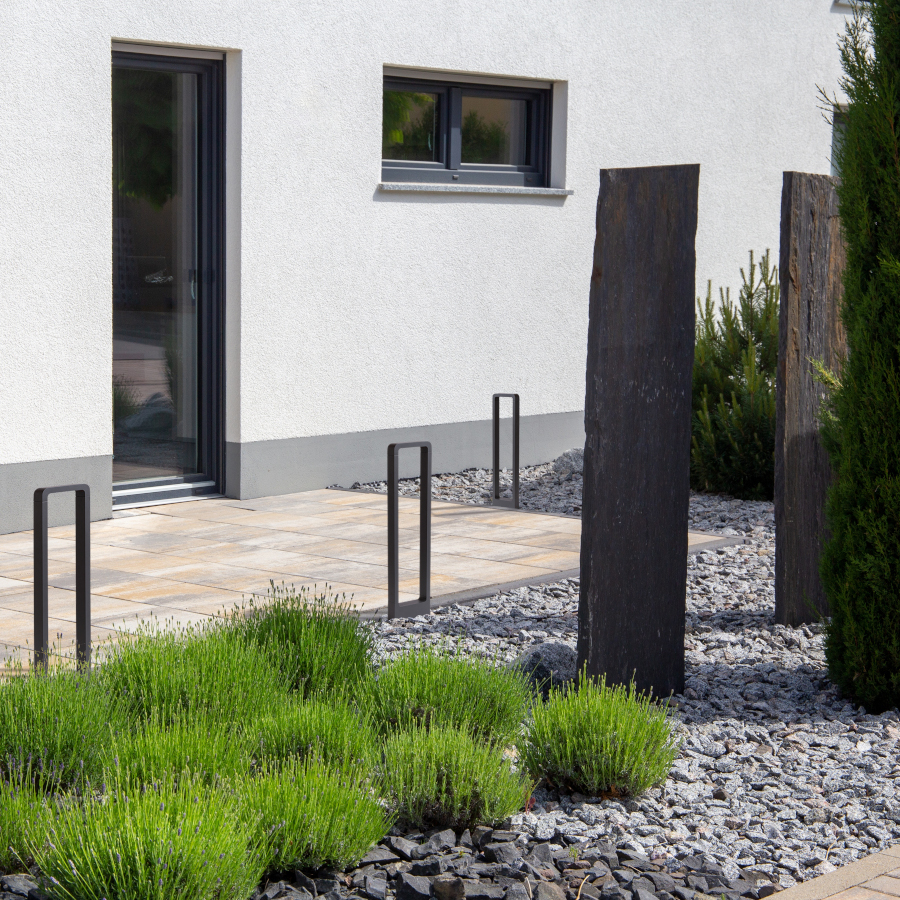 Kültéri, elegáns LED állólámpa lefelé irányban történő világítással a járda és az út megvilágítására.