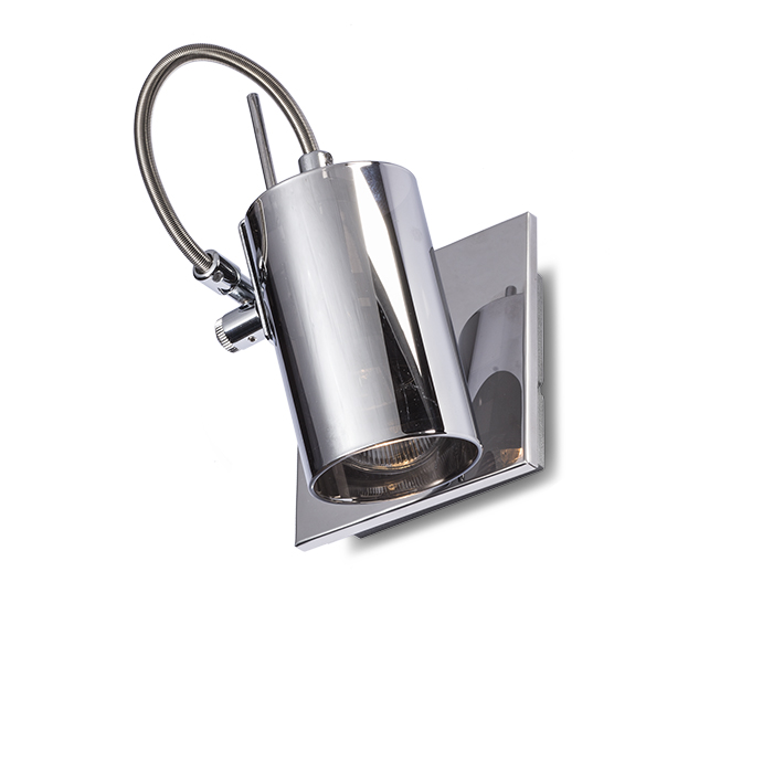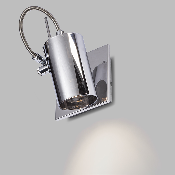 Fali lámpa tükrös üveg reflektorral, krómozott alapon.