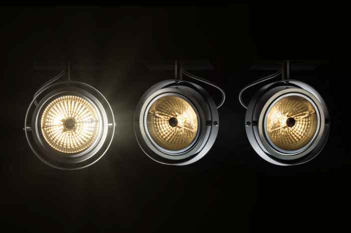 Fali vagy mennyezeti lámpa dönthető reflektorral.