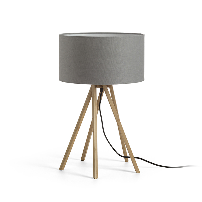 Asztali lámpa bambusz talapzattal és textil búrával. Szétszerelt állapotban szállítva.