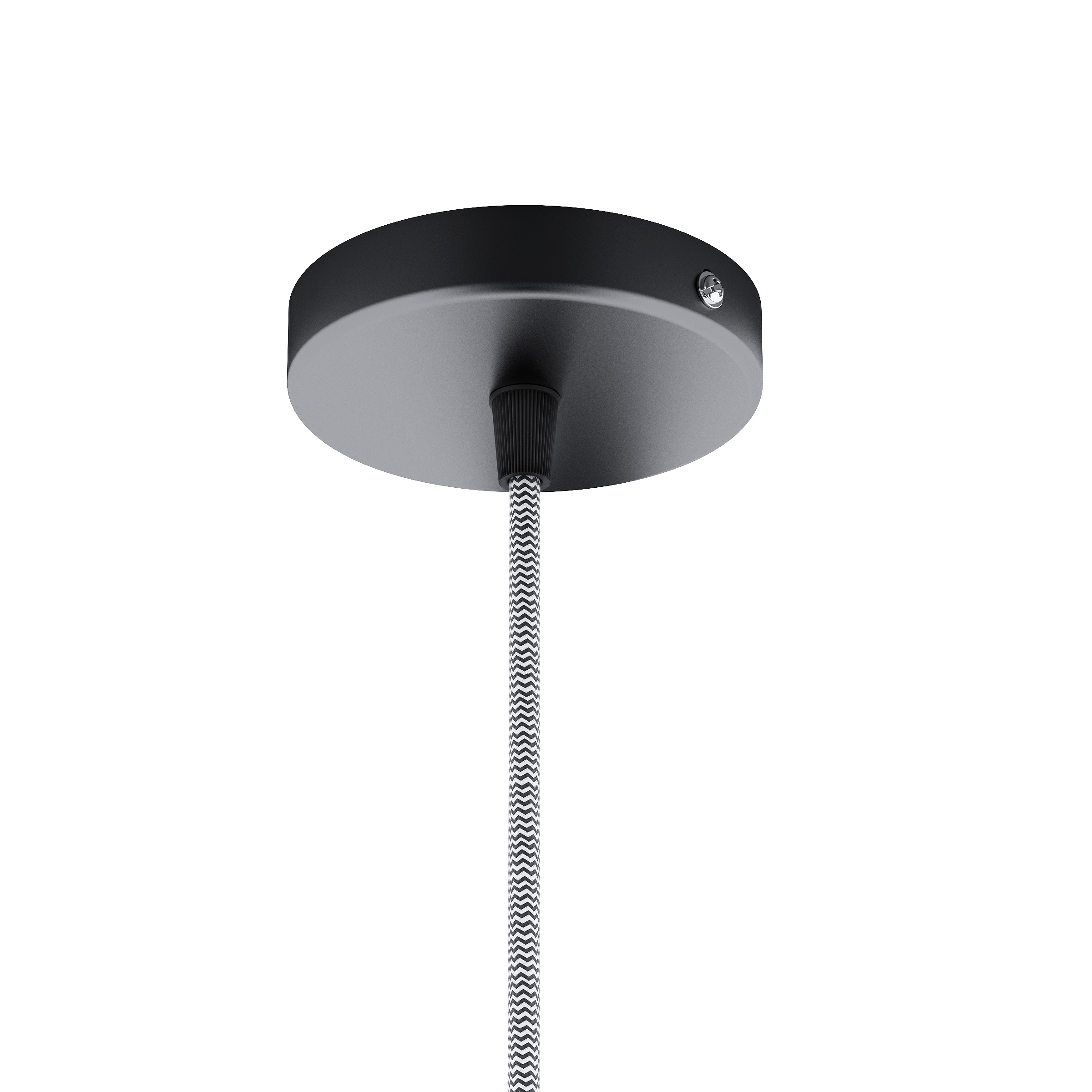 Függesztő készlet, kör alakú, fekete lakkozott alappal, textil kábellel, valamint egy fém E27 foglalattal. Alkalmas önálló használatra, vagy lámpák függesztésére. Megfelelő lámpabúrák: ARISTA, DELI, JAKARANDA, DOUBLE 40/30, DOUBLE 55/30, ASPRO 40/30, RON 40/25, RON 55/30, RON 60/19, TEMPO 30/19, TEMPO 50/19.