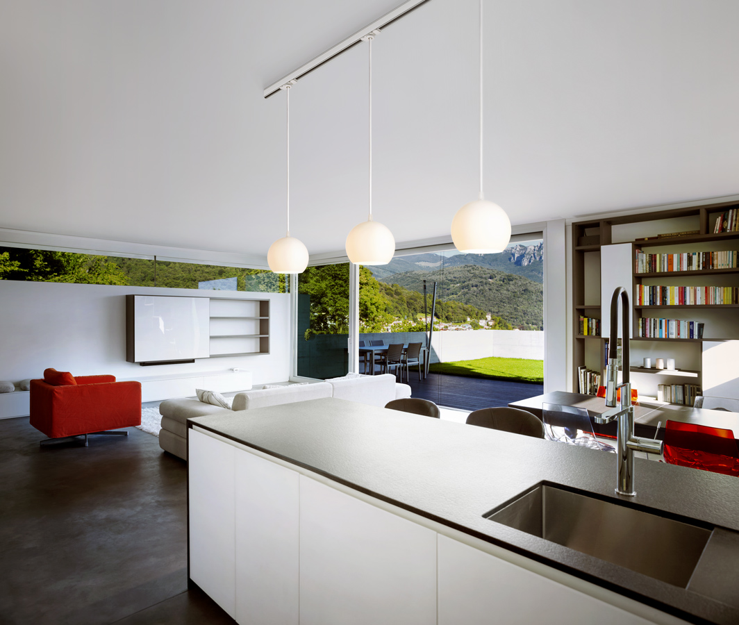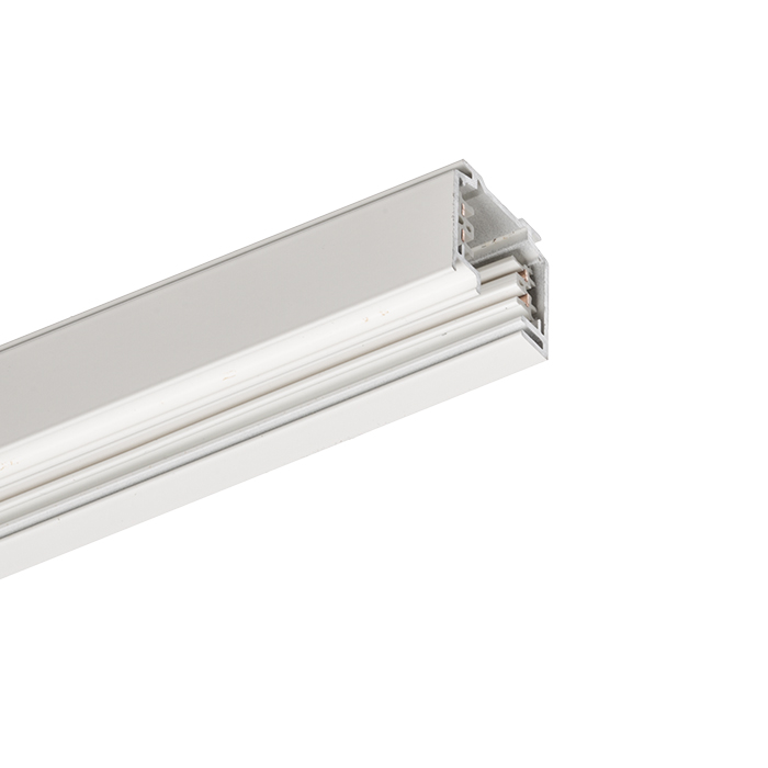 EUTRAC háromáramkörű sín. Bármely profil könnyen vágható a kívánt hosszra. A huzalvégeket nem kell levágni vagy meghajlítani. Halogénlámpák használata esetén a minimális beépítési magasság 2,5 m. E magasság alatt javasoltak a LED lámpák.