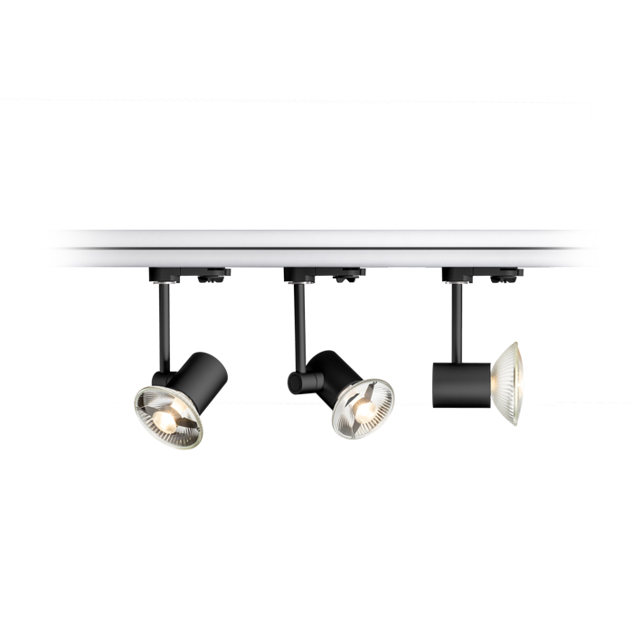 Lámpa háromáramkörös sínrendszerre. A lámpa GU10 foglalatú. 111 mm vagy 51 mm átmérőjű fényforrást is lehet használni. A lámpa méretei Sz/Ma 5/6,5 cm. A termék méretei fényforrás nélkül vannak megadva.