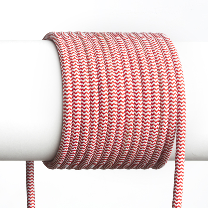 Háromeres kábel, különböző színű textil fonással. Szükség szerint, egy méteres hosszban egyedileg rendelhető.