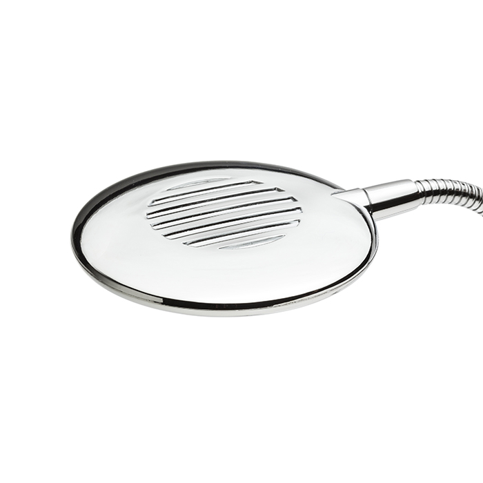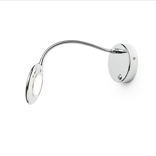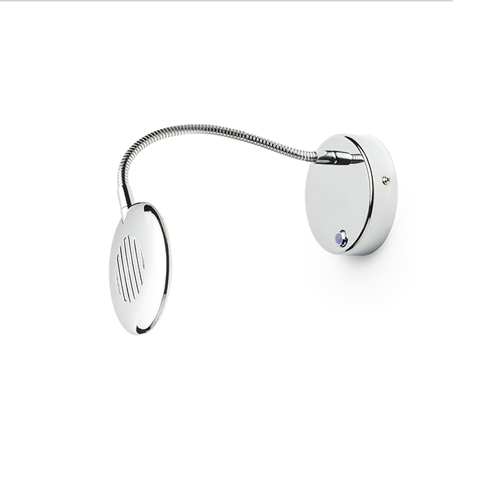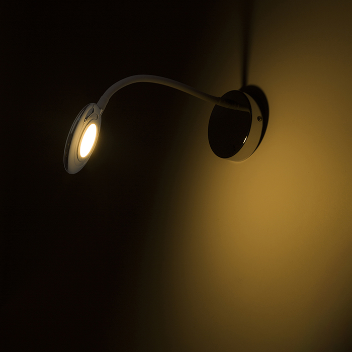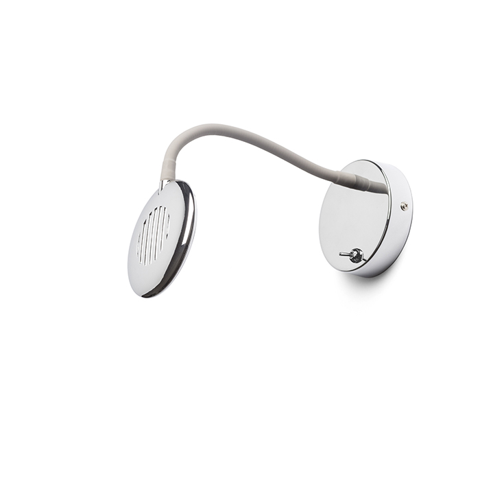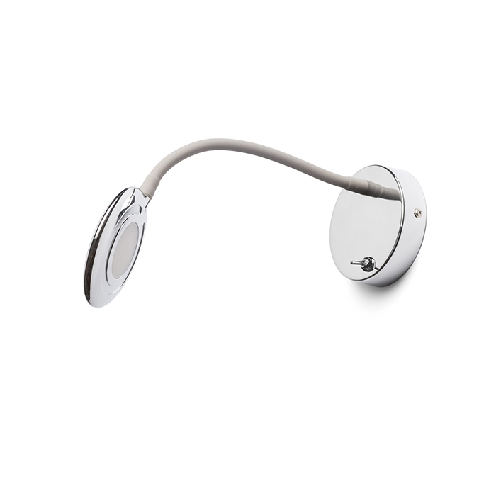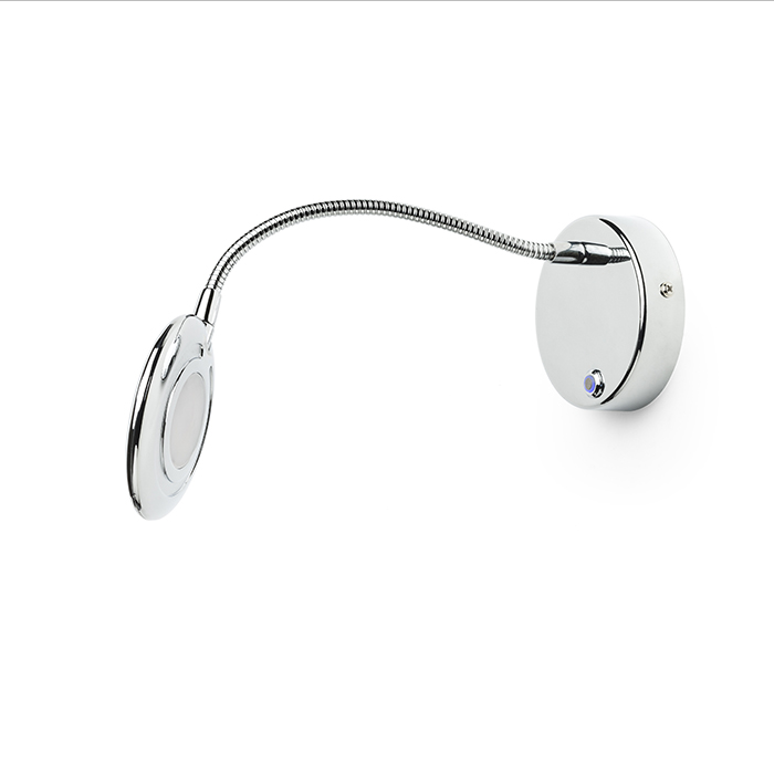 Fali LED lámpa kör alakú reflektorral, rugalmas nyakkal, kapcsolóval az alapon.