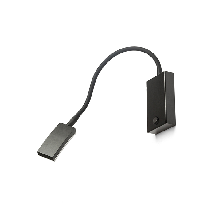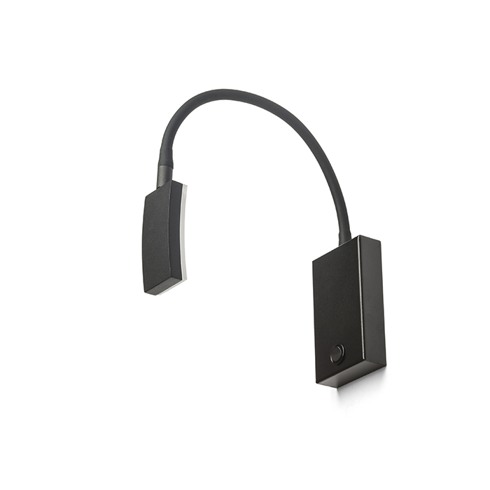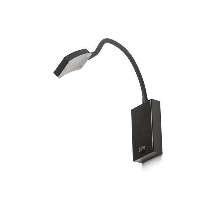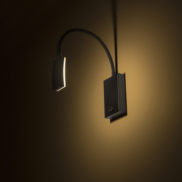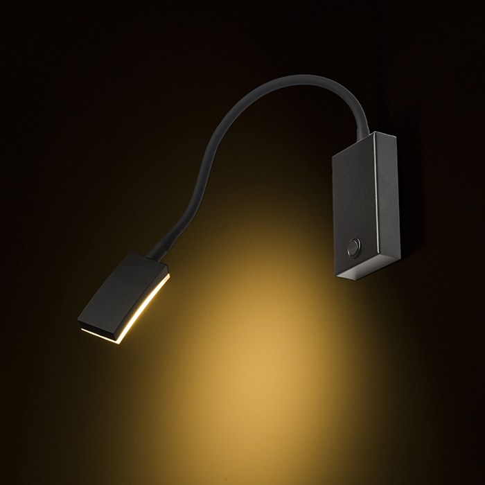 Fali, LED lámpa rugalmas nyakon, kapcsolóval az alapon és téglalap alakú fejjel a széles fényeloszlás érdekében.