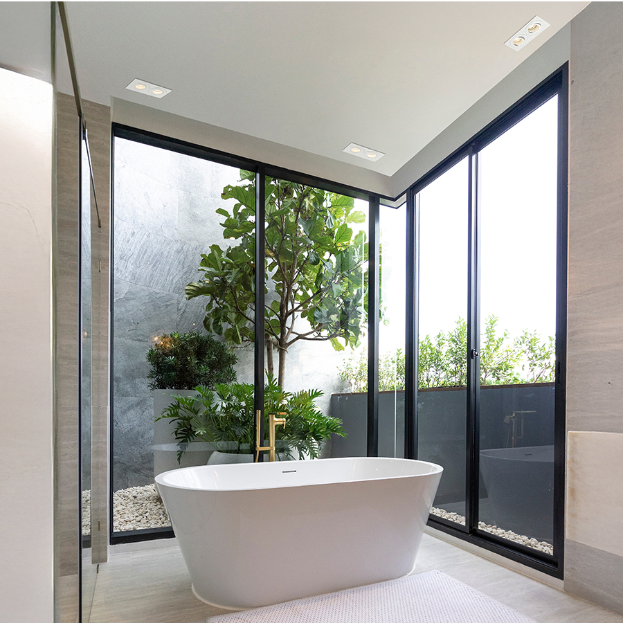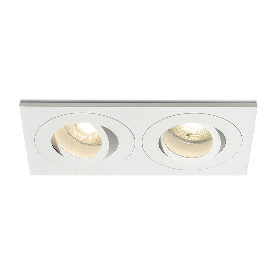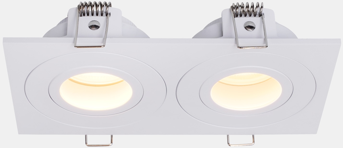 A gipszkarton mennyezetbe süllyeszthető LED fürdőszobai süllyesztett dupla lámpa, GU10 LED fényforrásokhoz.