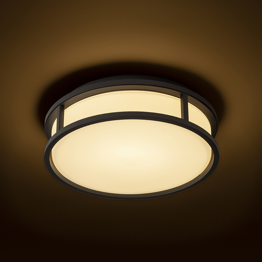 LED fürdőszobai mennyezeti lámpa lapos opálüveggel, fém keretben.