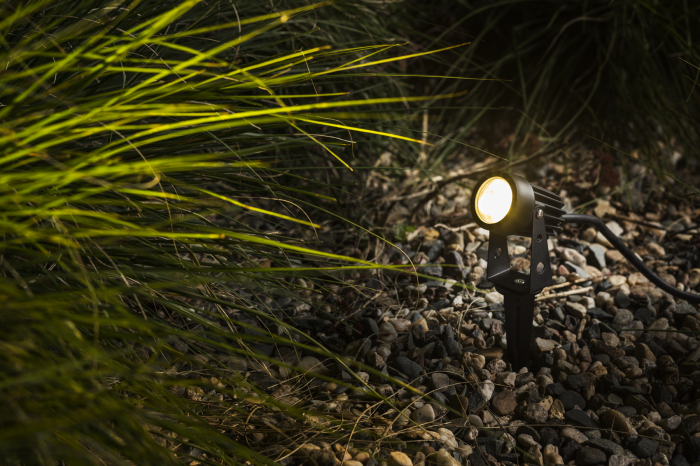 Kültéri LED mini reflektor földbe leszúrható tüskével. Egy méteres tápkábellel együtt. A kábel nincs lezárva.