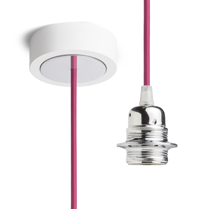 Függesztő készlet, lakkozott alumínium alappal, textil kábellel, valamint egy fém E27 foglalattal. Alkalmas önálló használatra, vagy lámpák függesztésére. Megfelelő lámpabúrák: ARISTA, DELI, JAKARANDA, DOUBLE 40/30, DOUBLE 55/30, ASPRO 40/30, RON 40/25, RON 55/30, RON 60/19, TEMPO 30/19, TEMPO 50/19.