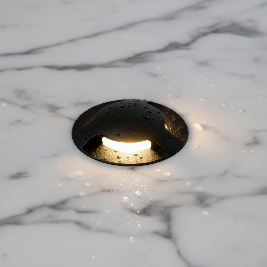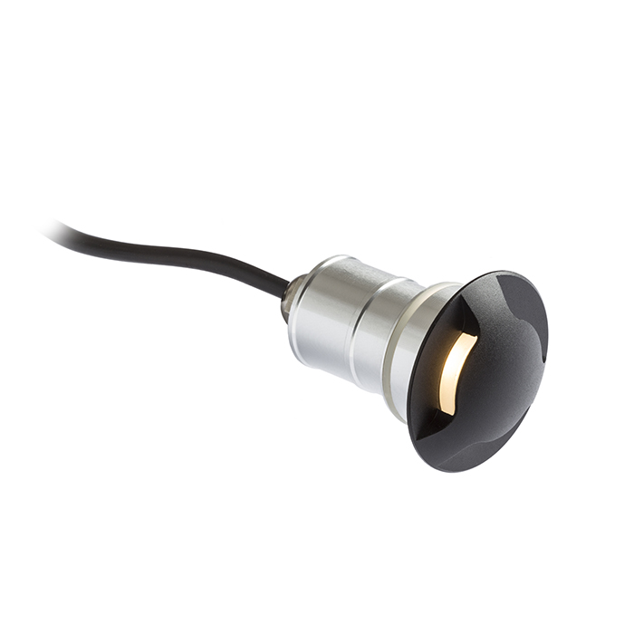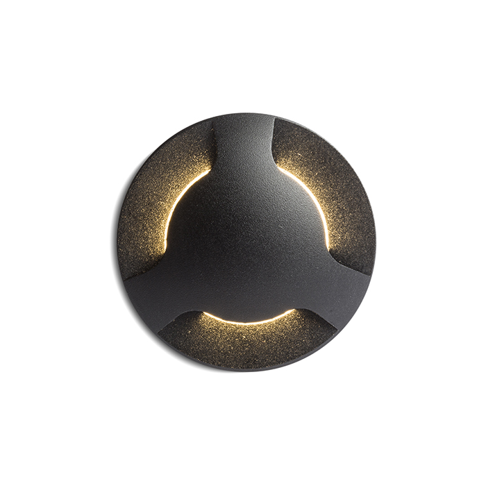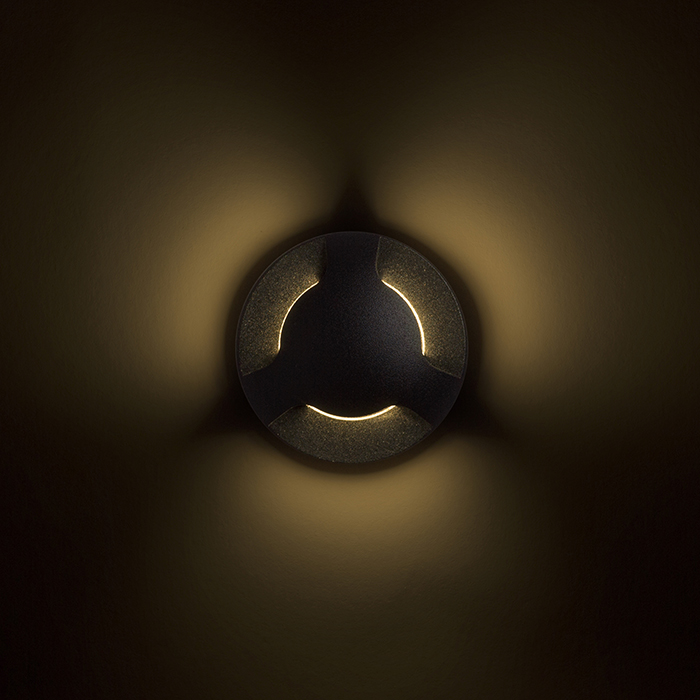 Süllyesztett, orientációs LED lámpa háromirányú világítással. Falra szerelhető.
