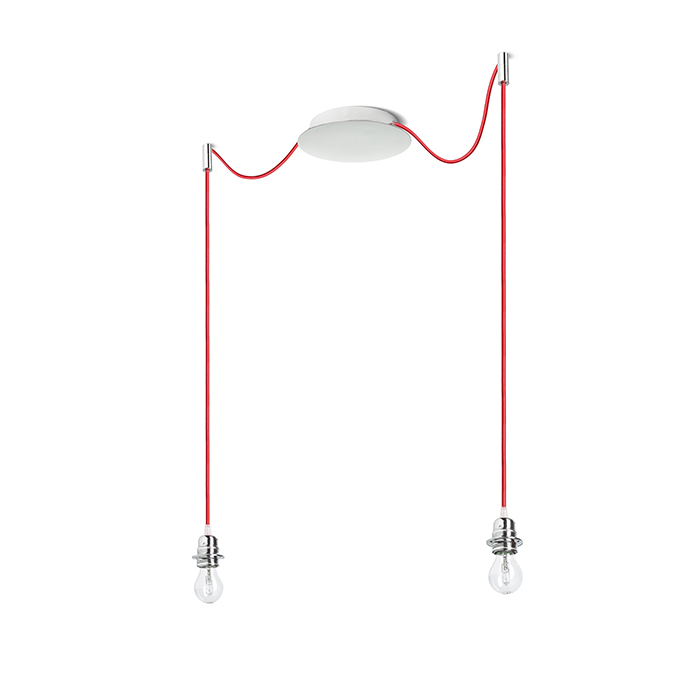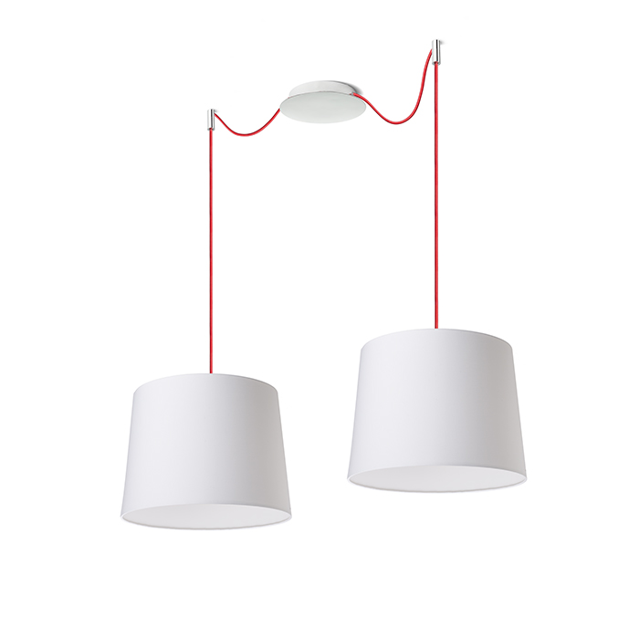 Függőlámpa központi mennyezeti alappal és különálló textil karokkal E27 fém foglalattal. A zsanérok króm mennyezeti tartókkal vannak felszerelve, amelyeket az alaptól külön-külön választott távolságra lehet elhelyezni. A kábel teljes hossza 3 m. Alkalmas lámpabúrák: ARISTA, DELI, JAKARANDA, DOUBLE 40/30, DOUBLE 55/30, ASPRO 40/30, ASPRO 55/30, RON 15/20, RON 40/25, RON 55/30, TEMPO 15/30, TEMPO 30/19.