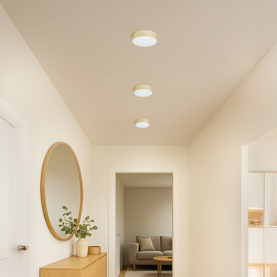 LED mennyezeti lámpa minimalista kerettel. A lámpa beépített kapcsolóval rendelkezik a fény színhőmérsékletének megváltoztatására (3000K, 4000K, 6500K).
