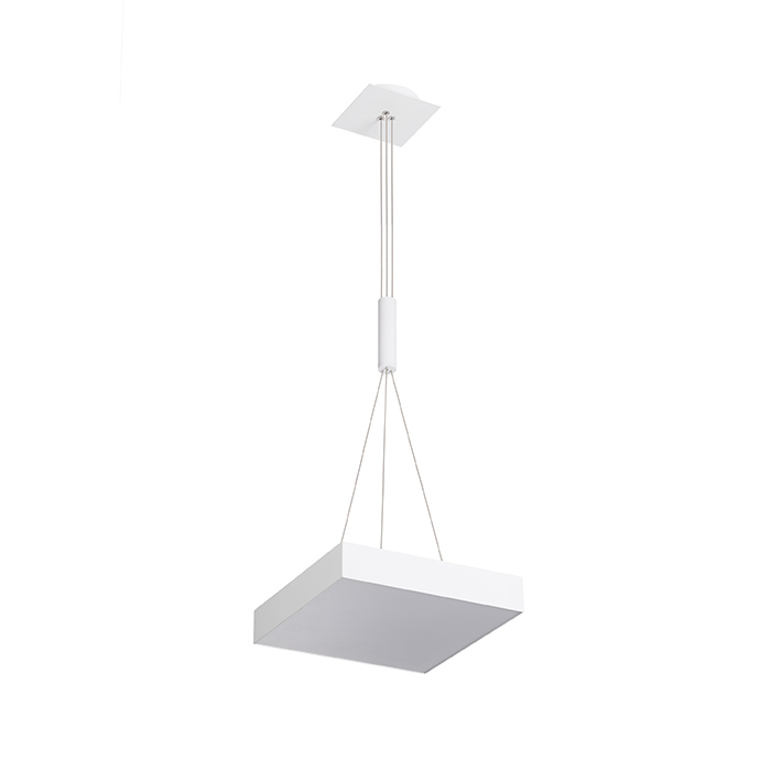 Négyzet alakú, függő LED lámpa, minimalista kerettel.