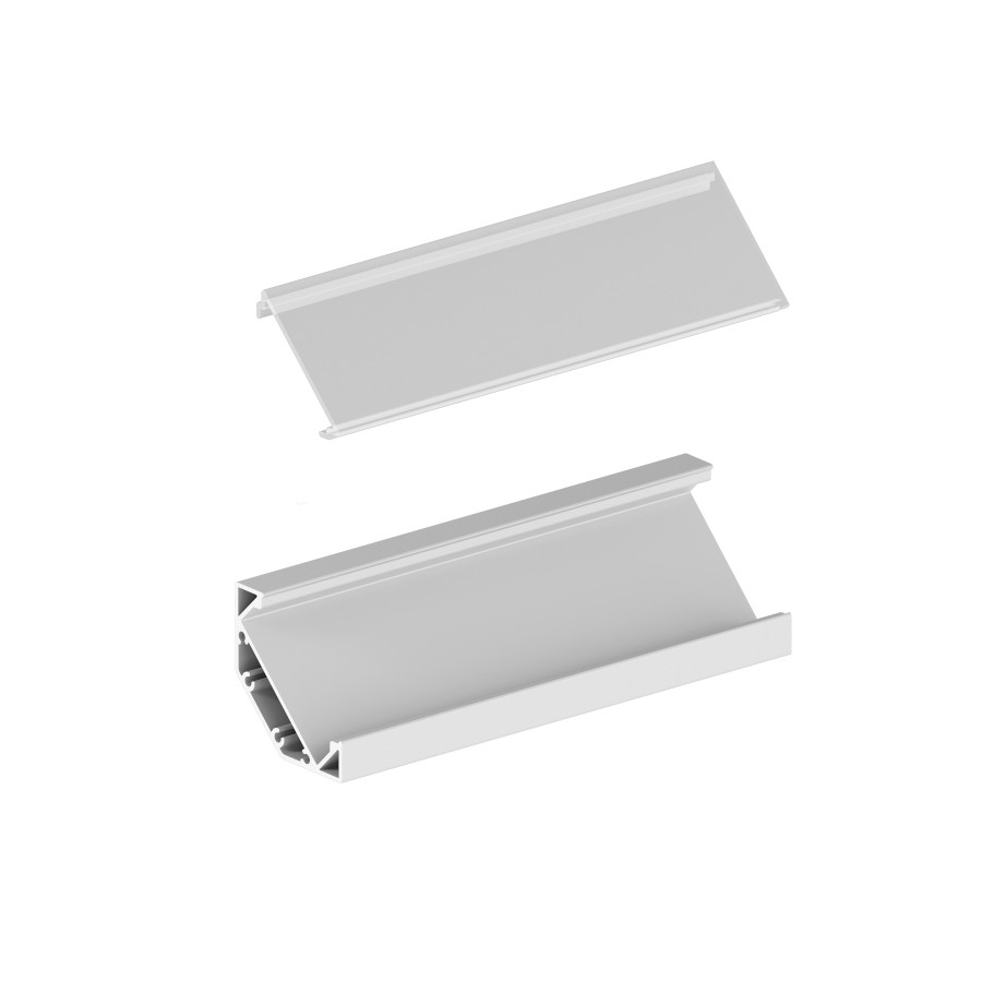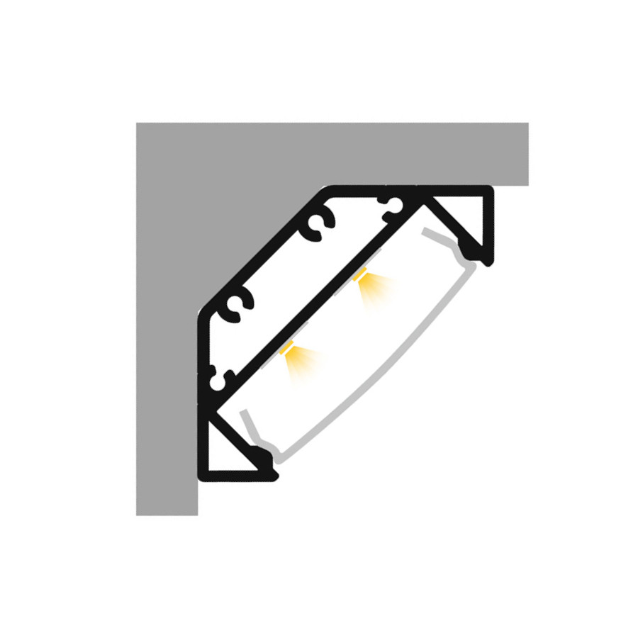 Egy sarokba szerelhető alumínium profil megfelelő LED szalagok pozicionálásához. A profilba akár három, 8 mm széles LED szalag vagy két, 12 mm széles LED szalag helyezhető el. Matt diffúzorral és kiegészítőkkel együtt szállítva.