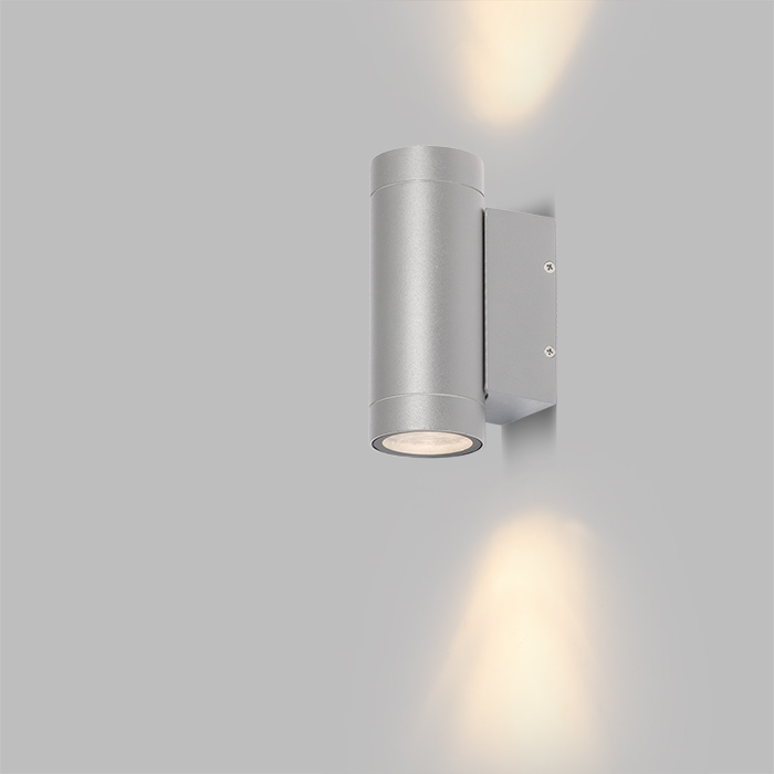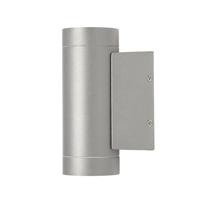 Falra szerelhető kültéri alumínium lámpa, két GU10 alapú fényforrásokhoz. Az alap méretei a Ma/Sz/Me 11/5,5/3,5 cm.