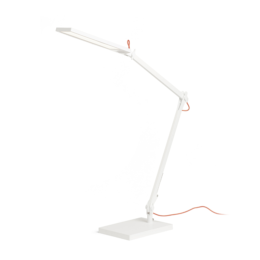 LED asztali lámpa két karral. A fényerősség és a szín szabályozása a reflektor tetején található. Háromfokozatú fényerőszabályzás. A lámpa az EMA (R14290, R14291) rögzítő külön megvásárlásával az asztallapra vagy polcra is rögzíthető.