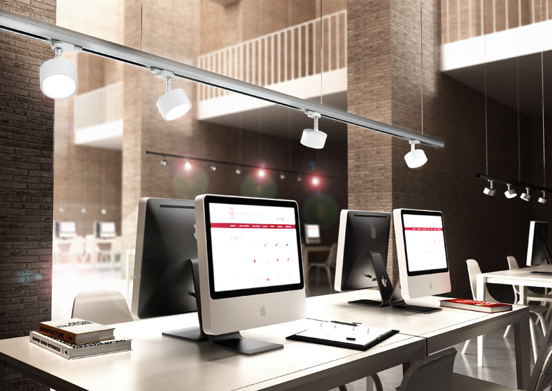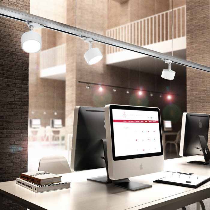 Alumínium dönthető lámpa adapterrel háromáramkörös sínre, három színben. A lámpa energiatakarékos LED fényforrásokhoz tervezték, GX53 foglalattal.