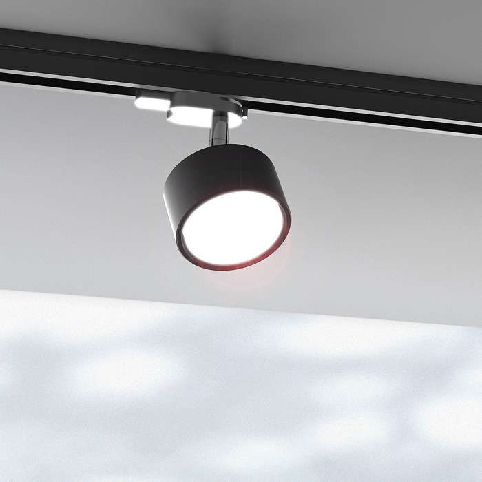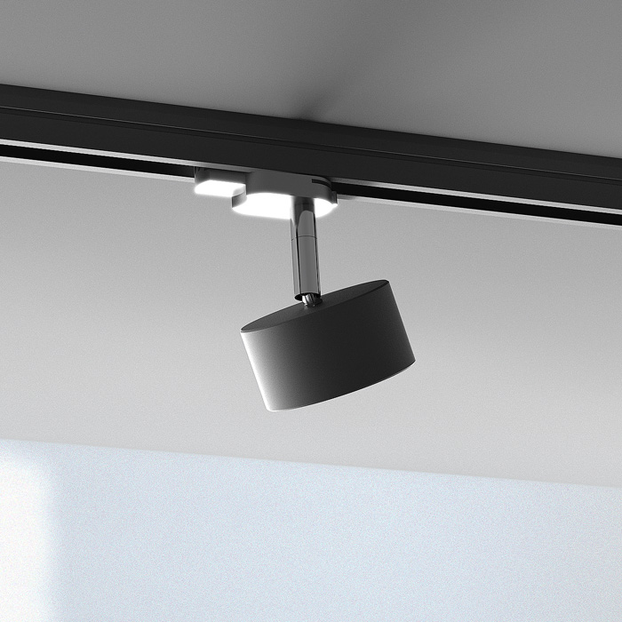 Alumínium dönthető lámpa adapterrel háromáramkörös sínre, három színben. A lámpa energiatakarékos LED fényforrásokhoz tervezték, GX53 foglalattal.